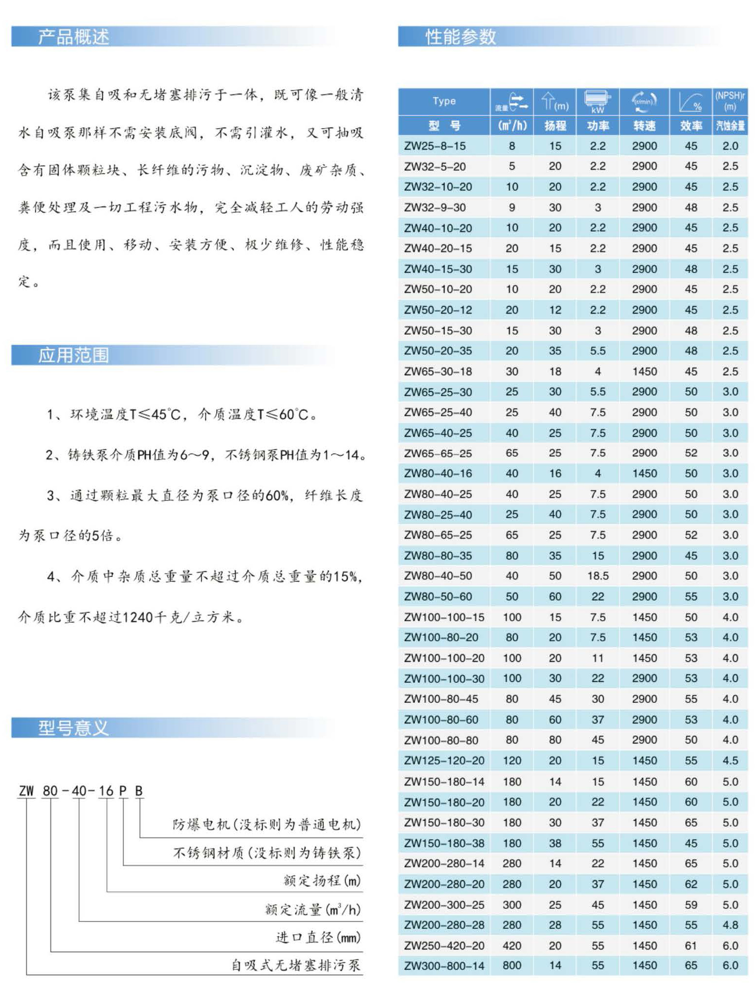 ZW(型自吸式无堵塞排污泵)
